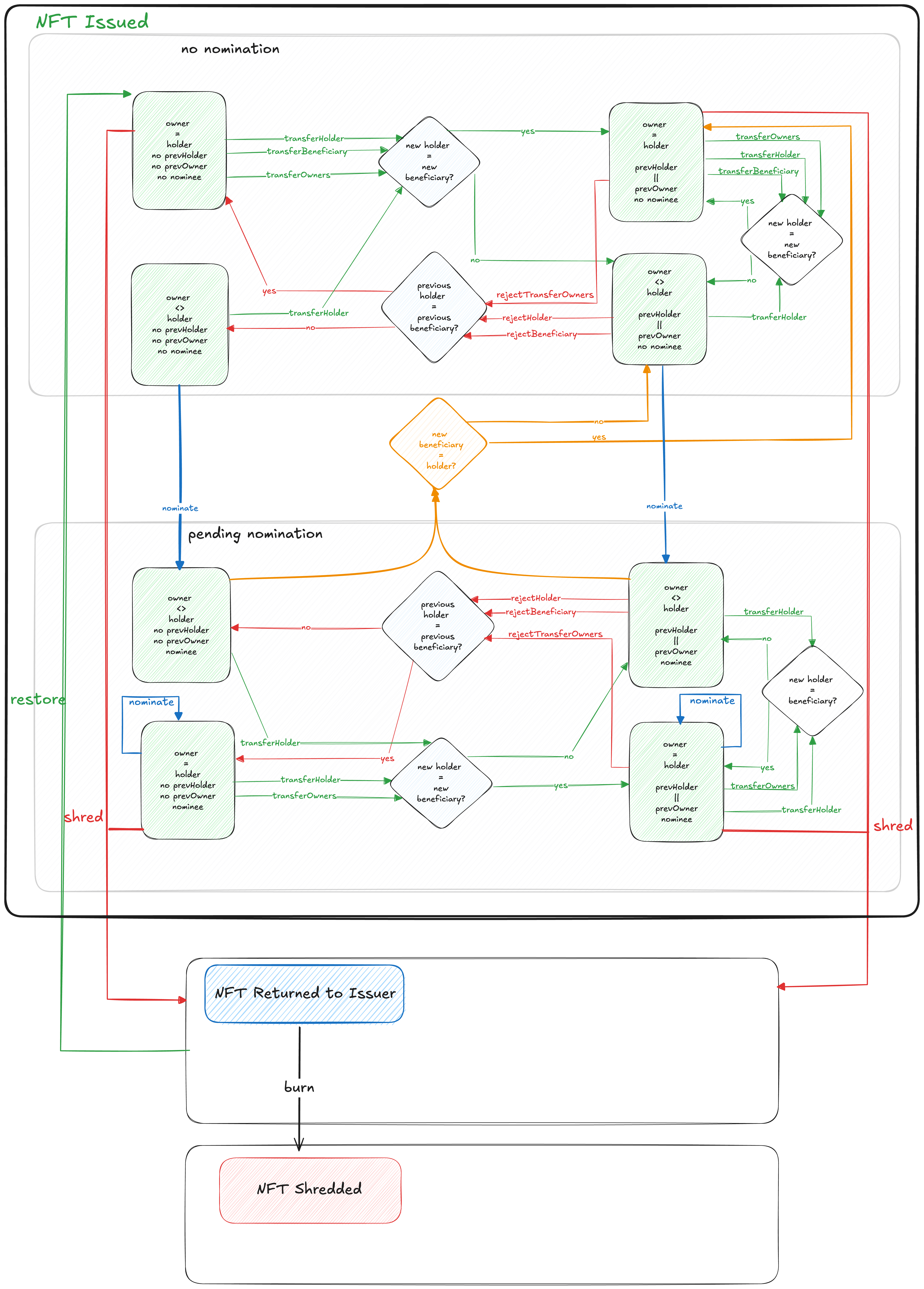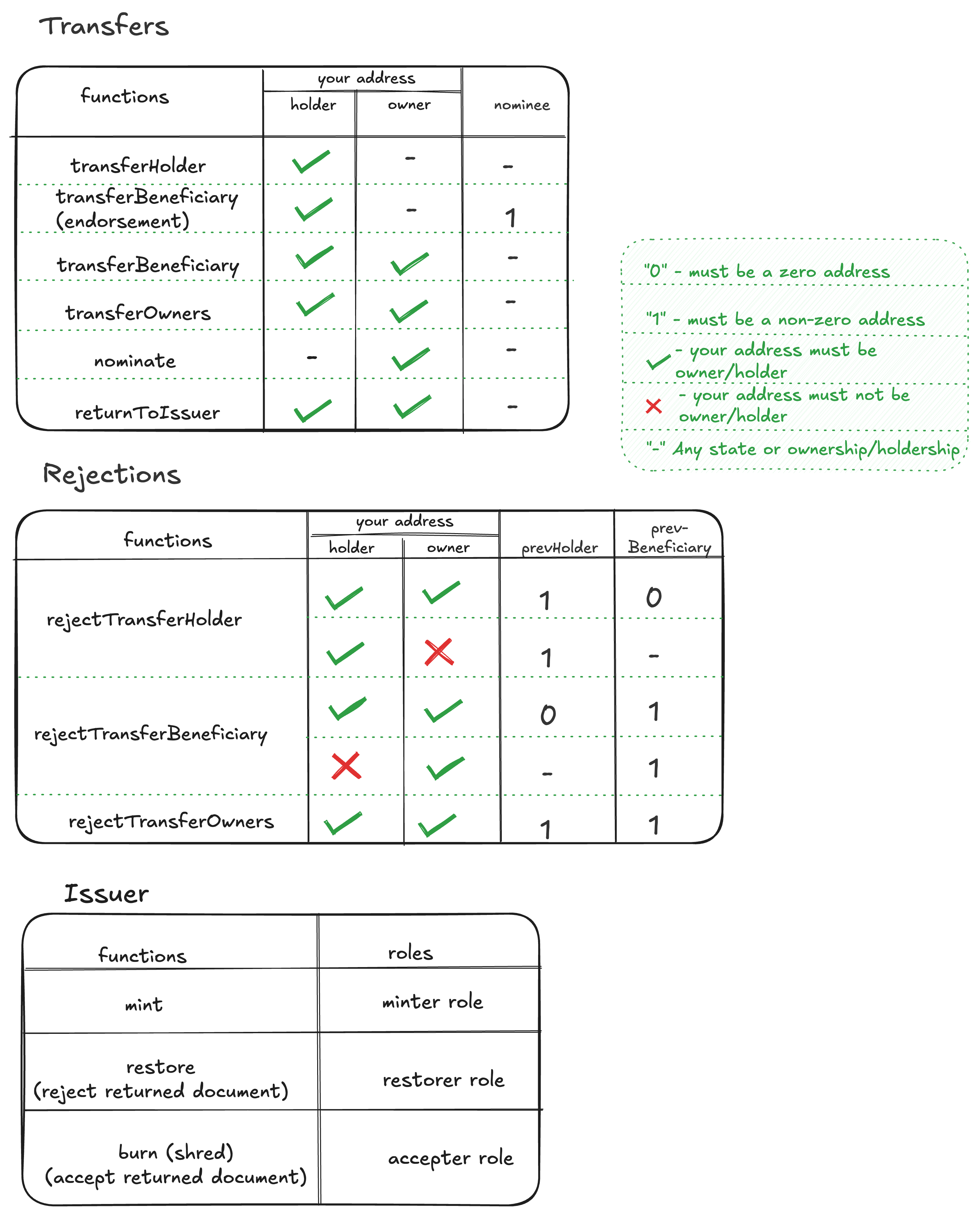 Below are the available transactions based on your role (Owner/Holder) and the current state of the token, whether as a Nominee, Previous Holder, or Beneficiary. You can successfully execute transactions depending on the provided state and role conditions.